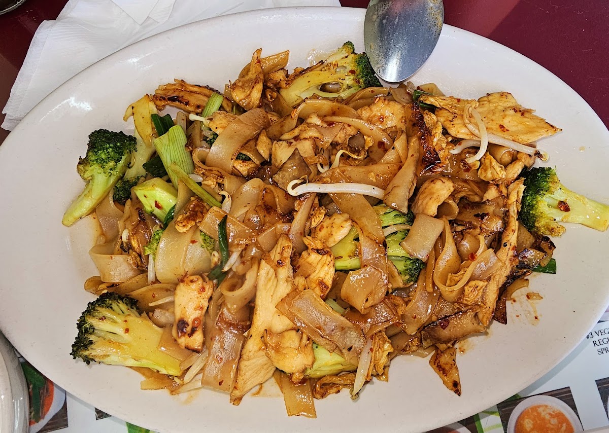 Had the Panang with Chicken. Loved that they used snow peas instead of Green Bell peppers. Ordered medium Spicy and that was perfect. But I did pull out the Jalapeños before beginning. Dish with Rice and Water with 20% tip $20.
